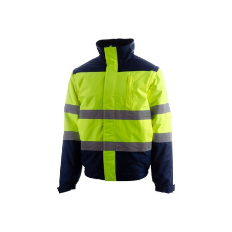 La Cazadora BEEWORK JUNGLE HV es una cazadora bomber de alta visibilidad 2 en 1, pensada para trabajar en exterior con frío y necesidad de señalización. Incorpora mangas desmontables, capucha oculta con cuello polar y varios bolsillos con cremallera para llevar lo esencial seguro durante la jornada.