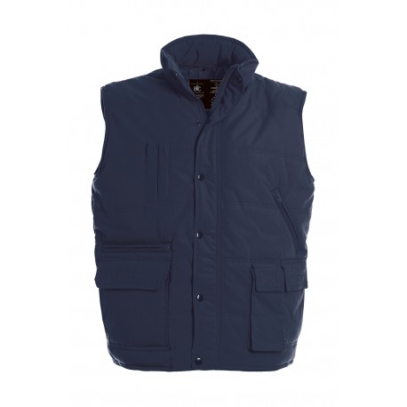 El chaleco de trabajo B&C JU880 es un bodywarmer multibolsillos pensado para jornadas en exterior con fresco, aportando abrigo sin perder movilidad. Su exterior repelente al agua y cierre combinado con cremallera y automáticos ayuda a cortar el viento, mientras el forro acolchado mantiene el calor cuando la temperatura baja.