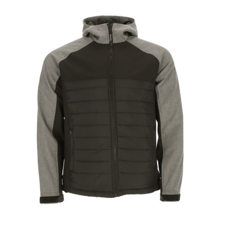Chaqueta softshell VALENTO BERING con capucha, combinada con tejido acolchado, muy cálida y confortable, ideal para entornos laborales y de tiempo libre.