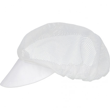 - Cofia con rejilla recoge pelo y visera rígida. Plisado en la parte frontal.