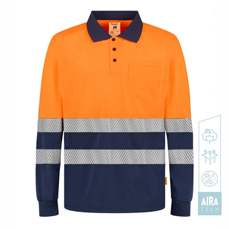 Polo BEEWORK SOUL HV diseñado para trabajos con riesgo por baja visibilidad, destaca por su tecnología AIRA TECH con tacto algodón y tratamiento antibacteriano, y por sus bandas reflectantes segmentadas. Una opción cómoda y transpirable para jornadas largas en exterior o nave.