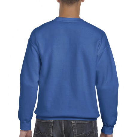 Este modelo de sudadera es de manga larga con cuello redondo. Presenta costuras dobles en cuello, sisas, puños y dobladillo. Posee mangas montadas y tejido tubular.